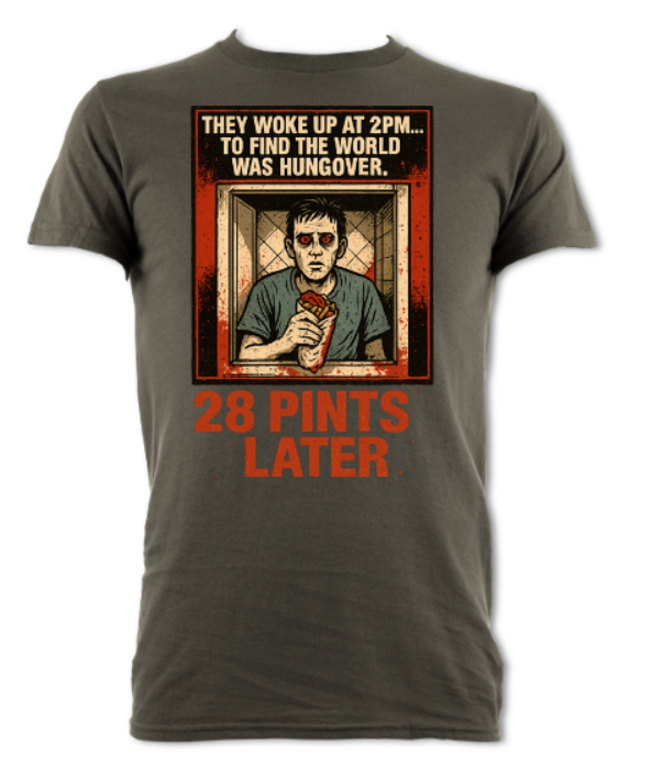 They Awoke to find the world was hungover 28 Pints Later short sleeved t-shirt